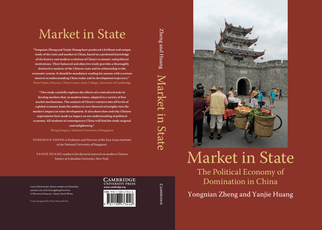 Market in State is a book I co-authored with Zheng Yongnian, a leading political scientist specialized in China. Focusing on the evolving relations between the state and market from late imperial to contemporary China, Market in State present a theory of Chinese capitalism by identifying and analyzing three layers of the market system in the contemporary Chinese economy. These are, namely, a free market economy at the bottom, state capitalism at the top, and a middle ground in between. By examining Chinese economic practices through both theoretical and historical lens, the book sets out the analytical framework of ‘market in state’ to conceptualize the market not as an autonomous self-regulating order but part and parcel of a state-centered order.